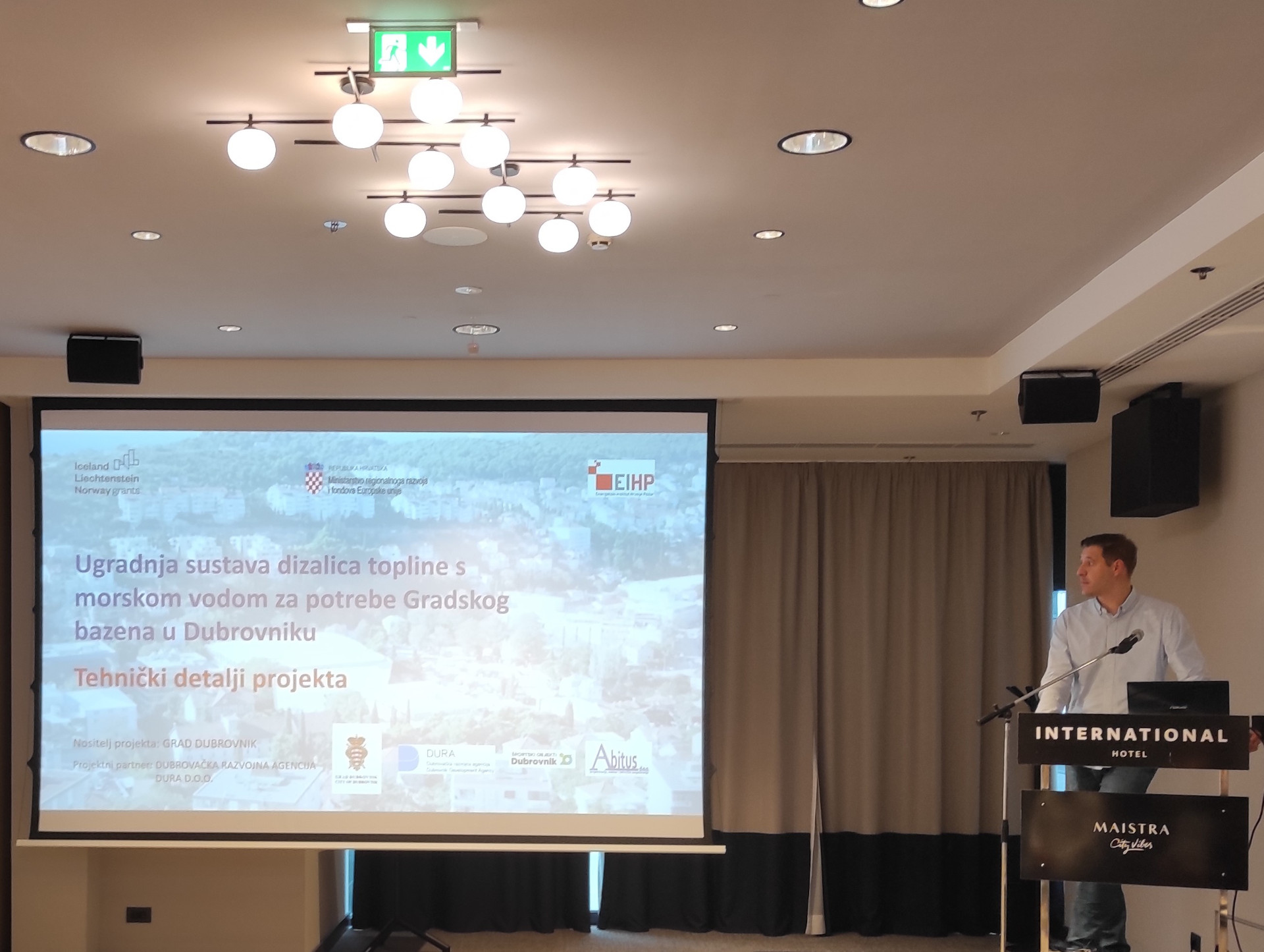 Kako je izgledala rekonstrukcija sustava grijanja u Gradskom bazenu u Dubrovniku, okupljenima je predstavio projektant sustava Fili Zoričić. Sama provedba projekta je bila vrlo izazovna zbog ograničenog prostora za izvedbu sustava zahvata morske vode, zahtjeva da se radovima ne naruše uvjeti korištenje bazena za korisnike te činjenice da je rok za provedbu dio ograničen pravilima Financijskog mehanizma Europskog gospodarskog prostora (EGP) 2014. – 2021. Rekonstrukcijom je zamijenjen dotrajali sustav kotlova na lož ulje s dizalicama topline koje koriste morsku vodu te su time ostvarene značajne uštede u smanjenju emisija stakleničkih plinova i povećanje korištenja OIE u grijanju.