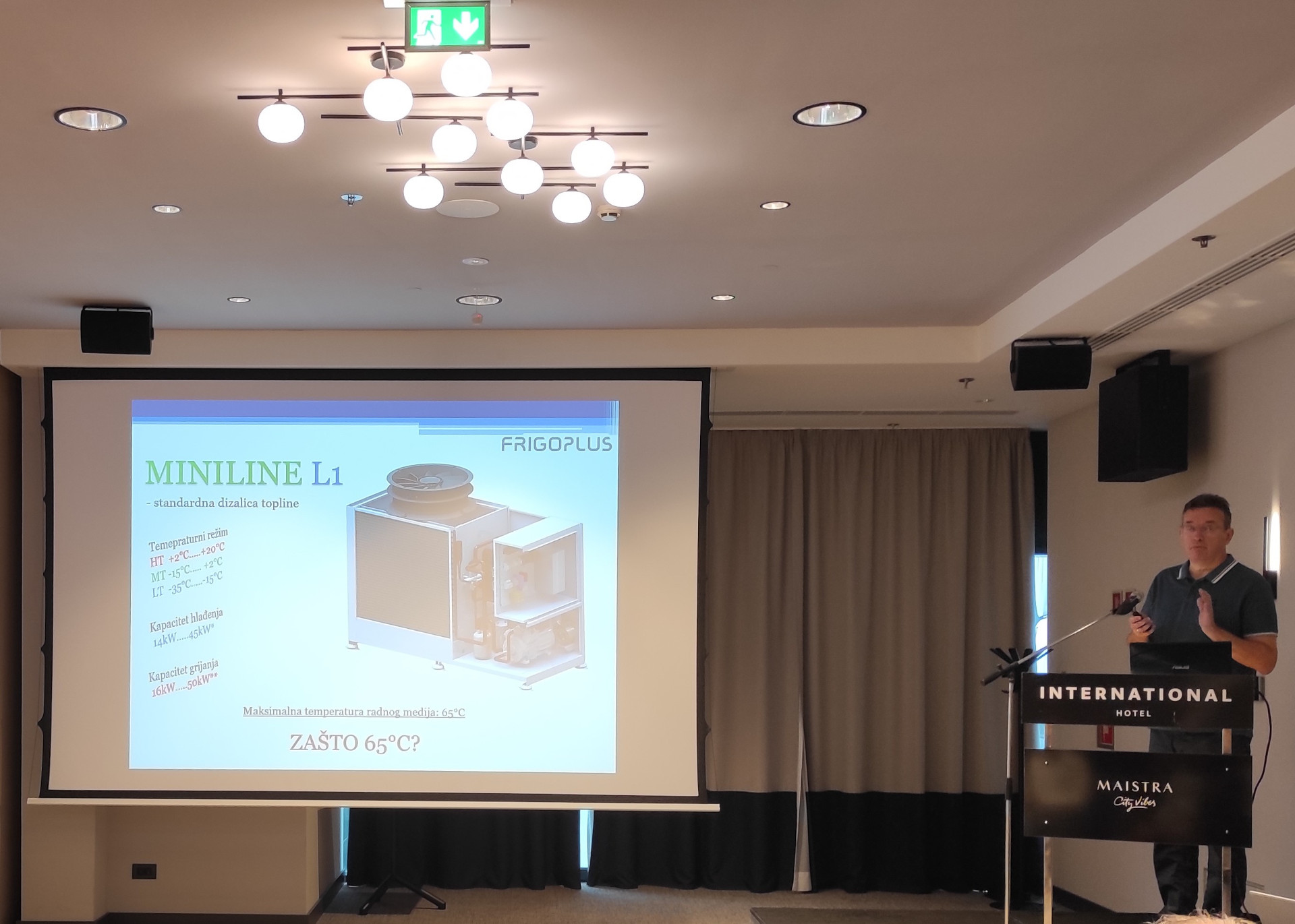 Iskustva razvoja vlastite visoko-temperaturne dizalice topline s propanom kao radnom tvari prezentirao je Toni Grubišić iz tvrtke Frigo Plus. Dizalice topline s temperaturom polaza preko 70 °C neophodne su za dekarbonizaciju zgrada koje nisu prikladne za korištenje nisko-temperaturnih sustava grijanja, a mjerenim podacima na izvedenoj dizalici topline u industrijskoj hali pokazani su karakteristični režimi rada iste pri stabilnom radu i pri režimu odleđivanja isparivača.