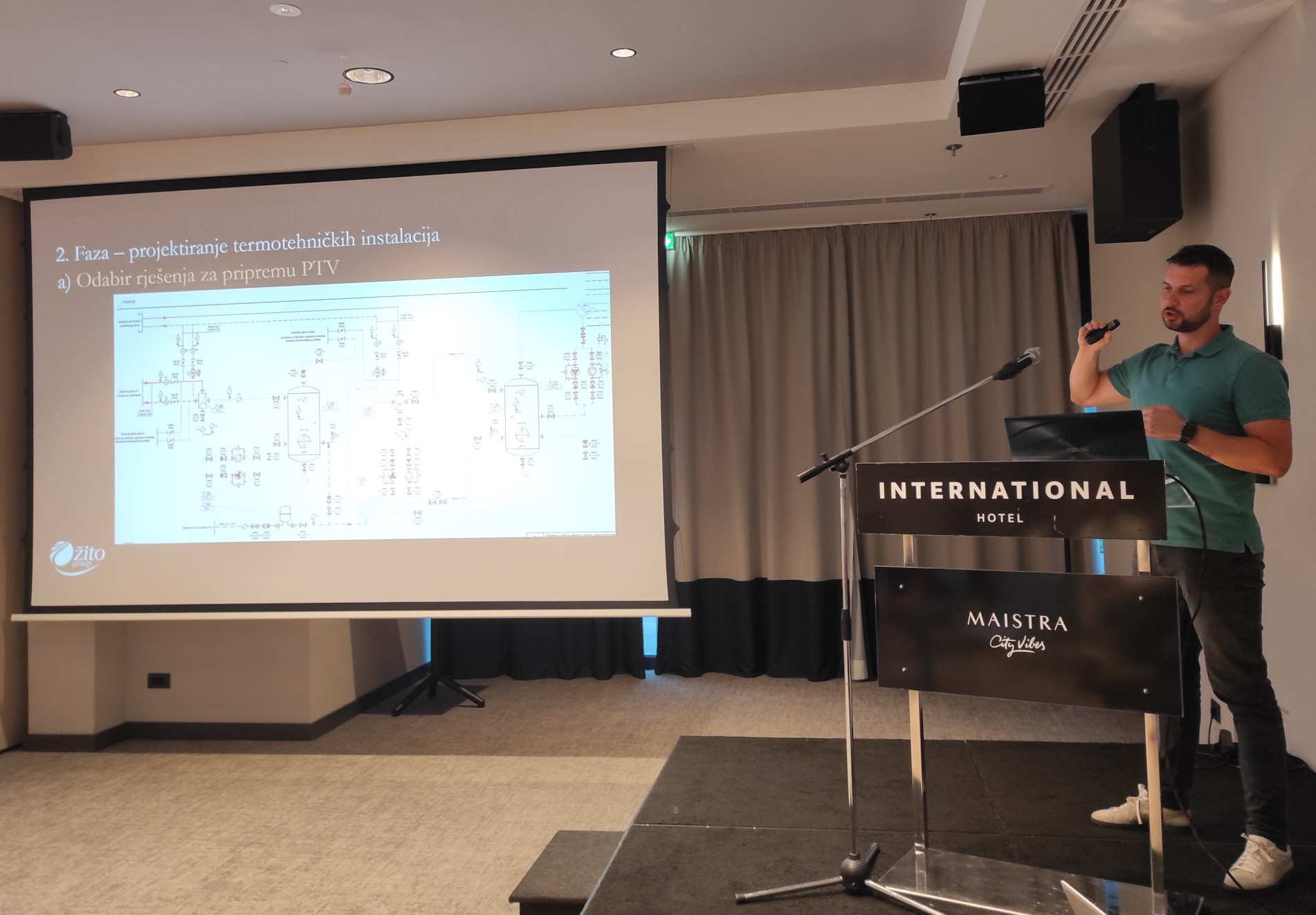 Posljednjim predavanjem, Vedran Lovrić iz tvrtke Žito grupa, prikazao je proces izrade najvećeg polja bušotinskih izmjenjivača topline u Hrvatskoj. Riječ je o hotelu Terra Negra u Čepinu, a prezentacijom su predstavljeni, uz same tehnički detalje sustava, motivacija, izazovi i razlozi odabira takvog rješenja za navedeni objekt.